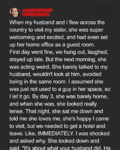 When my husband Kurt and I traveled across the country to visit my sister Sasha, she welcomed us with open arms. Her little apartment became our cozy haven, filled with laughter, late-night stories, and the joy of finally being together. For the first day, everything felt perfect. But soon, I noticed something was wrong. Sasha’s […]