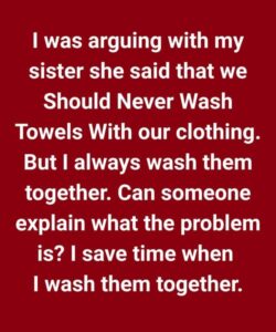 I was arguing with my sister. She said that we should never wash towels with our clothing.