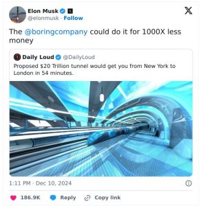 Elon Musk has once again teased a groundbreaking innovation, this time proposing a revolutionary underground tunnel to connect New York and London. Discussions about a transatlantic tunnel between the two cities have circulated for years, with the concept envisioning a journey of just 54 minutes across the roughly 5,500-kilometer distance.